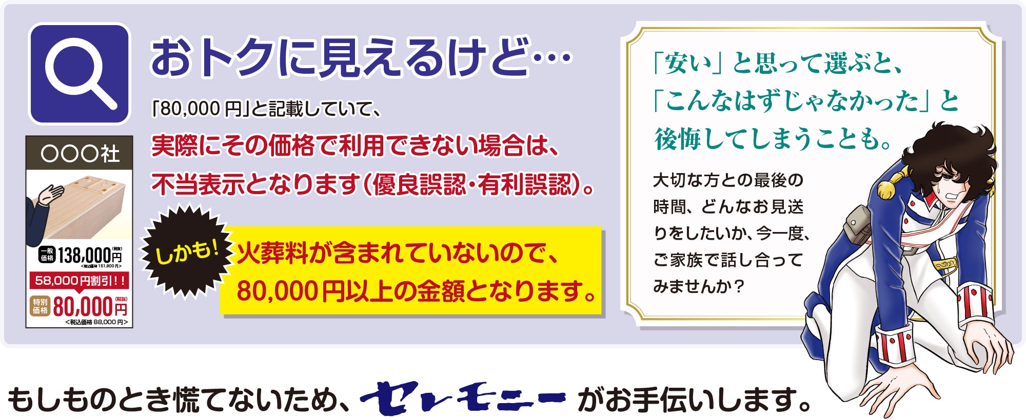 セレモニーでは「厚生労働省認定葬祭ディレクター技能審査」により資格を取得した「葬祭ディレクター」が常駐。ご家族ごとの専属となり、急なご相談にも対応いたします。また、「終活コーディネーター」が終活に関するさまざまなアドバイスを行っております。