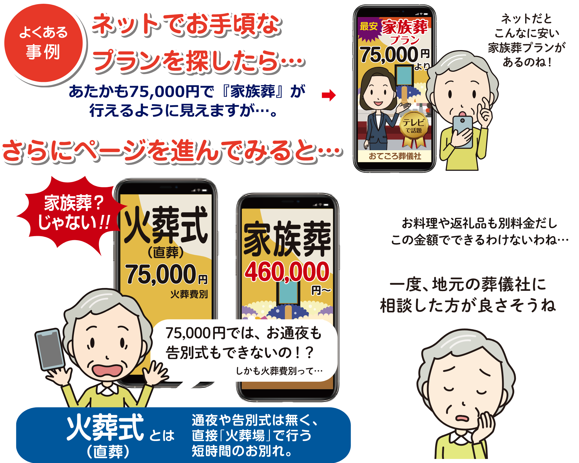 直葬の価格で「通常のお葬式」ができるかのように勘違いするおそれがあるグラフにも注意が必要です。