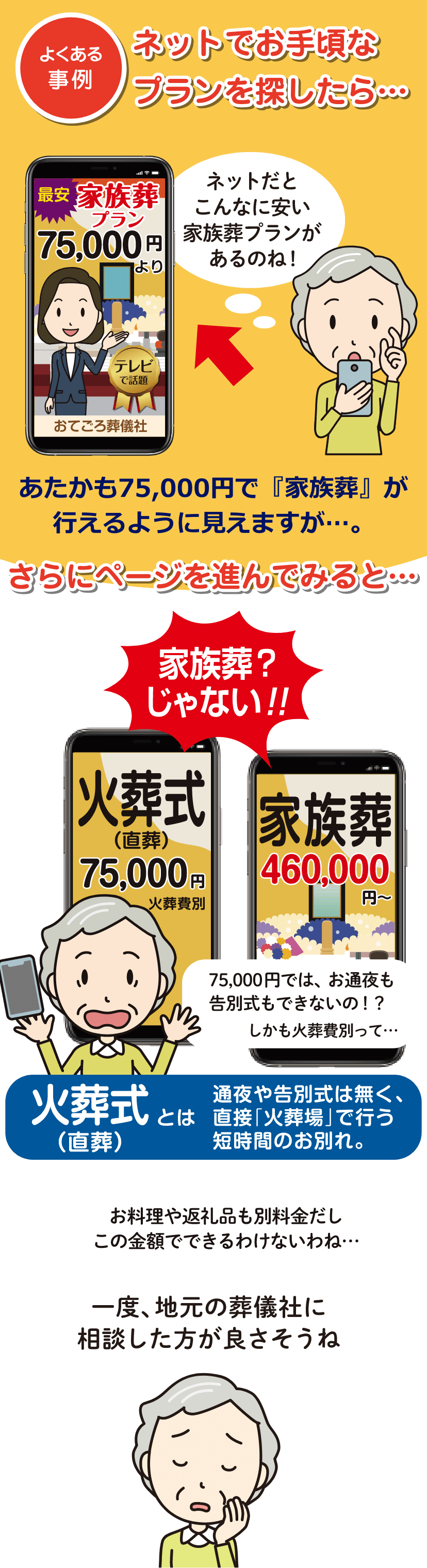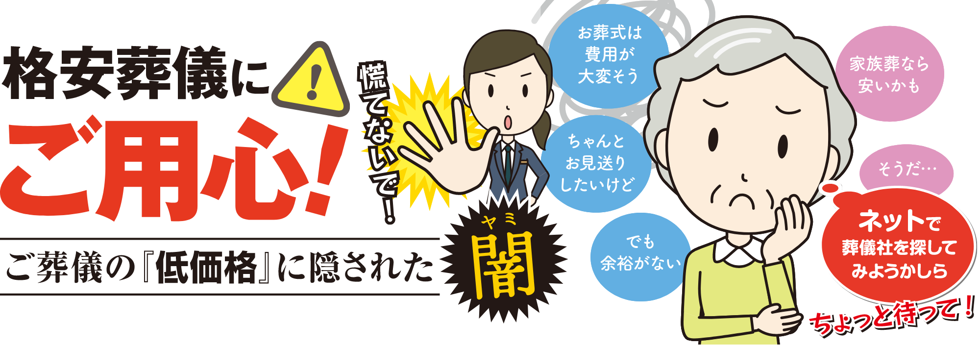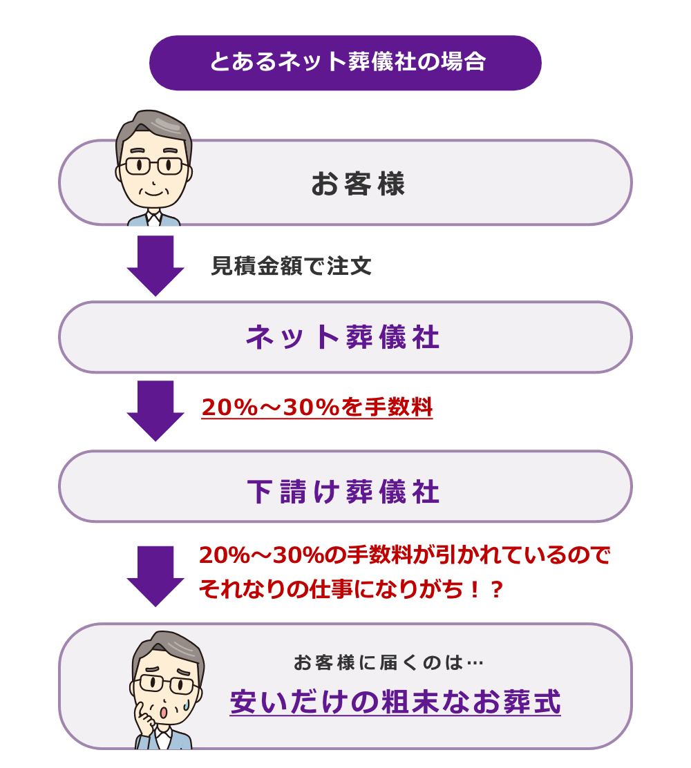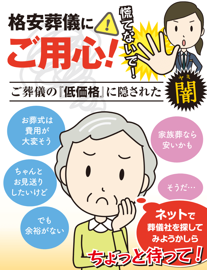 さらに言えば、他社の名前を利用して付加価値をつけようとする葬儀社は誇大広告をしがちなばかりか、自社サービスに自信がないとも考えられます。