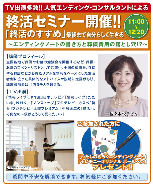 1/11 北浦和ホールにて「セレモニーフェア感謝祭」終活セミナー・ビックリお得市 開催