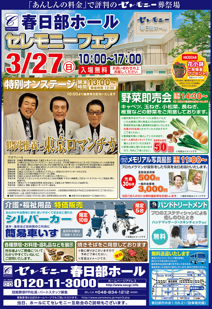 3/27春日部ホールにて 「鶴岡雅義と東京ロマンチカ」特別オンステージ(無料)開催!!
