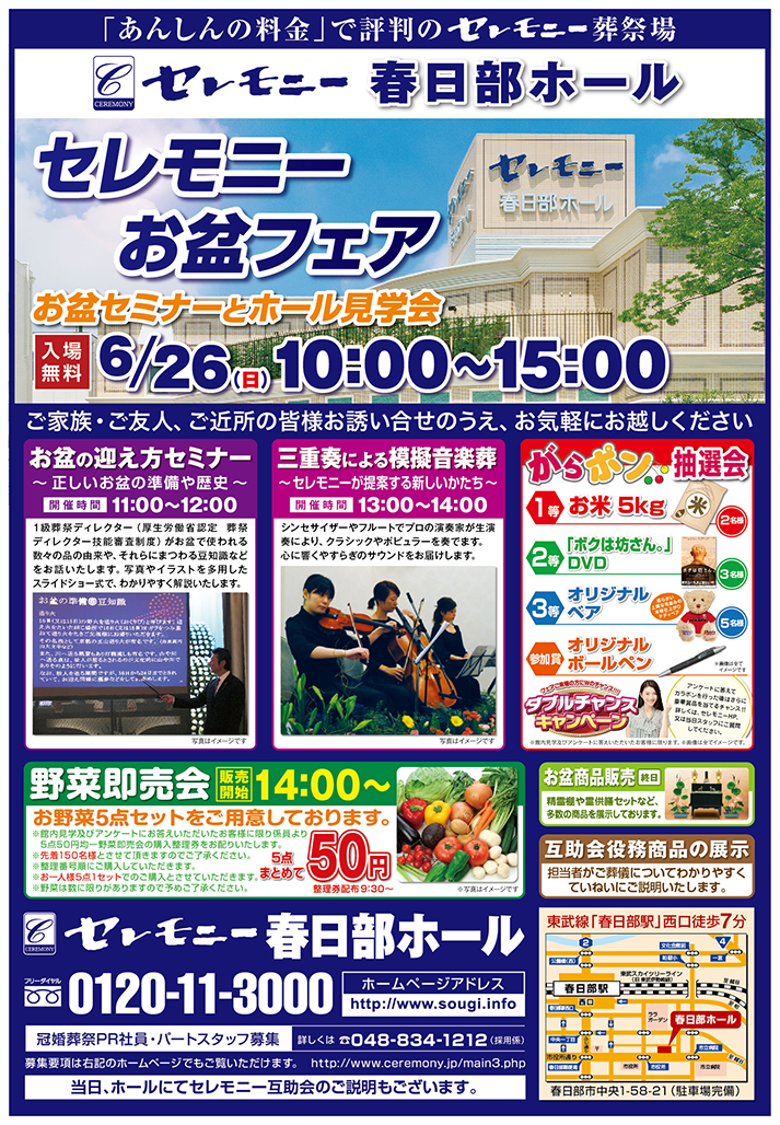 2016/06/26(日)「セレモニーお盆フェア」「ホール見学会」を開催!!