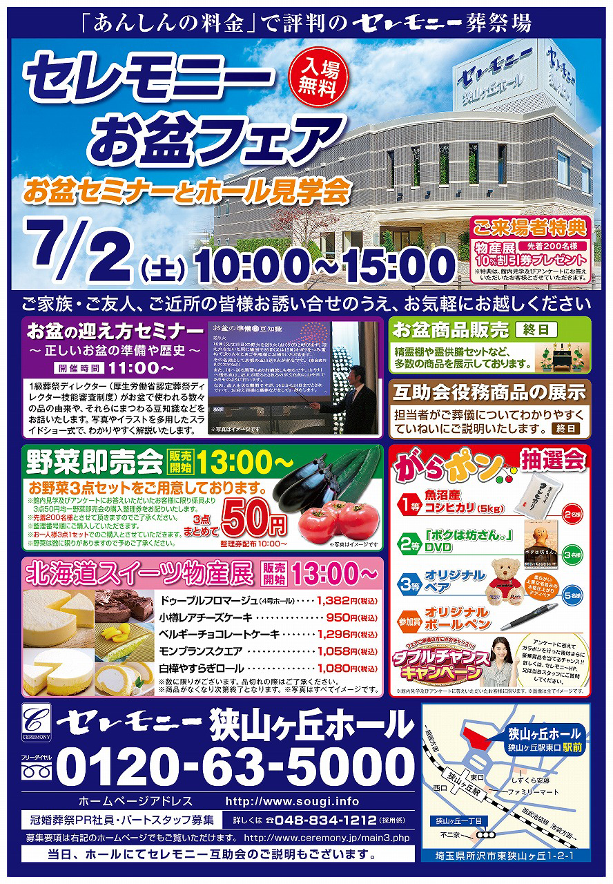 2016/07/2(土)「セレモニーお盆フェア」「ホール見学会」を開催!!