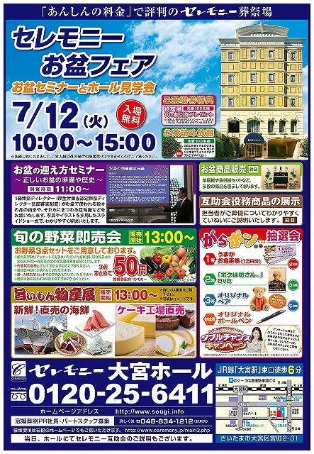 7/12セレモニー大宮ホール「お盆フェア」開催 さいたま市