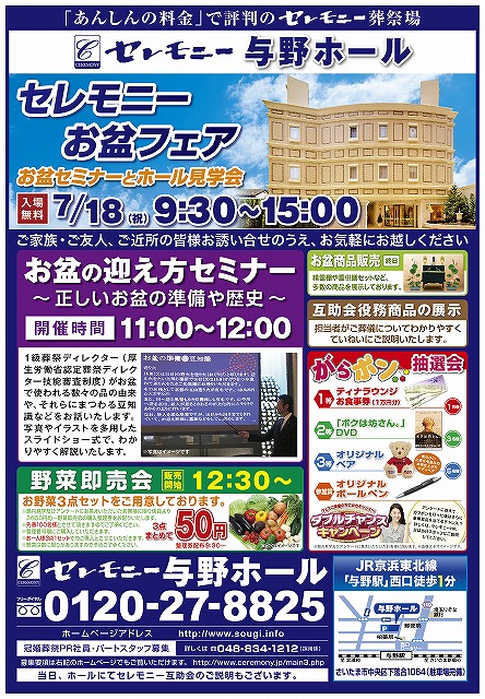 7/18セレモニー与野ホール「お盆フェア」開催 さいたま市