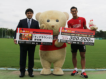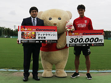 槙野選手には『ゴールdeセレモニー第10号「メモリアル10」ゴール』強化費30万の目録と、