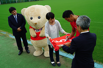槙野選手からその場でサインを書いていただいたユニフォームを手渡されると、当選者の方もうれしそうでした。