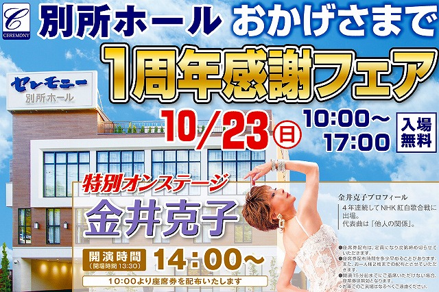 10/23(日) おかげさまで1周年 セレモニー別所ホール フェアのお知らせ