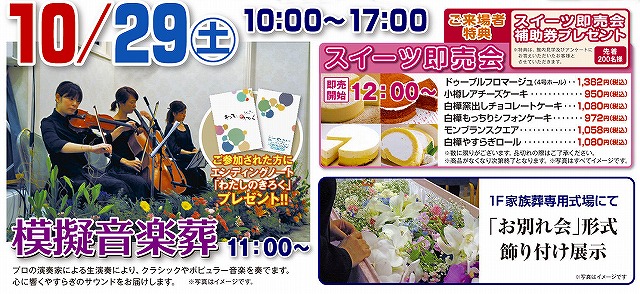 10月29日(土)は「音楽葬」や「お別れ会」を実際に体感できるセレモニーの新しいイベントやスイーツ即売会
