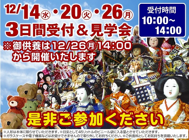 セレモニー狭山ヶ丘ホールでは人形供養祭を開催する運びになりました。