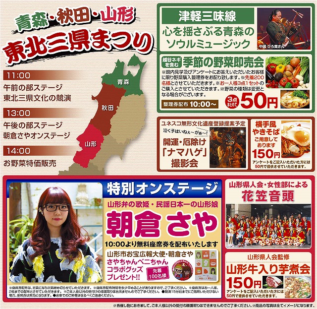 山形弁の歌姫・民謡日本一の山形娘、朝倉さやさんの特別オンステージや花笠音頭、青森の津軽三味線、