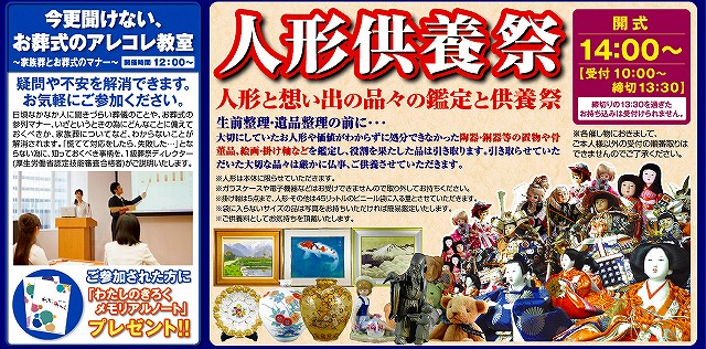また、セレモニーフェアで大変ご好評を頂いております、人形供養祭を開催。