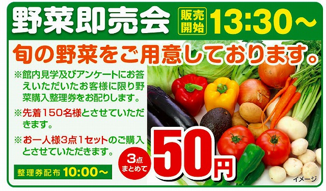 野菜即売会を行います。また、ご来場さま特典として「花小鉢」をプレゼントします。