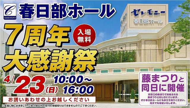 4月23日(日) 春日部市「藤まつり」と同日開催 セレモニー春日部ホールフェア