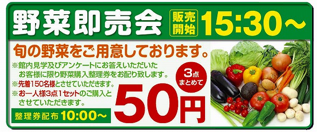 旬な野菜の即売会は3点50円で購入できることもあり、大人気のイベントです。