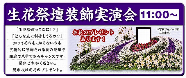 「生花祭壇装飾実演会」を開催いたします。実演会終了後はお花のプレゼントもございます。