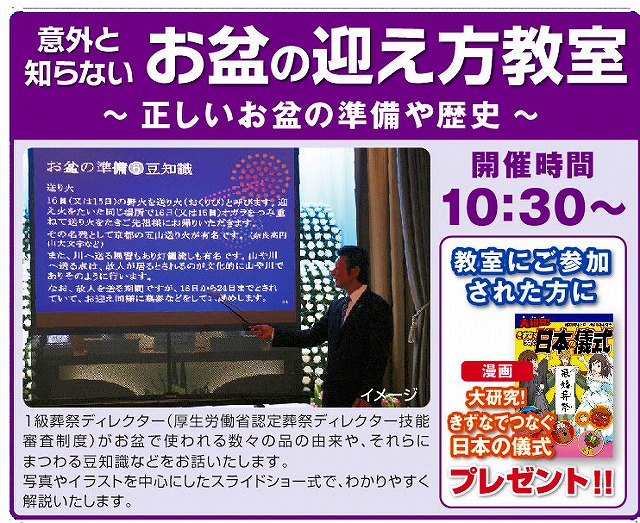 セレモニーホールでは毎年、お盆の迎え方のセミナーを開催しており、