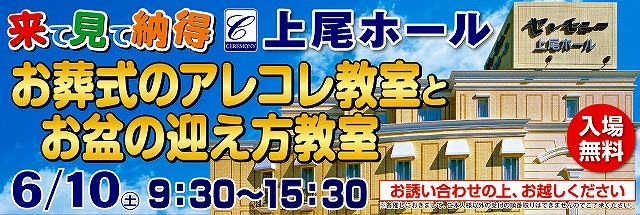 6月10日(土)セレモニー上尾ホール お葬式のアレコレ教室とお盆の迎え方教室 開催