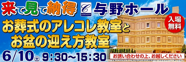 6月10日(土)セレモニー与野ホール お葬式のアレコレ教室とお盆の迎え方教室 開催