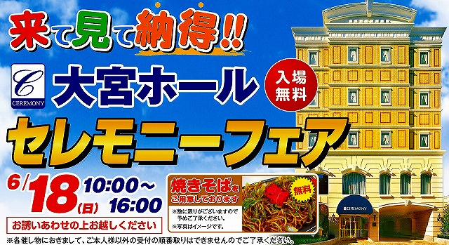 葬儀式場 セレモニー大宮ホールでは6月18日セレモニーフェアを開催いたします。