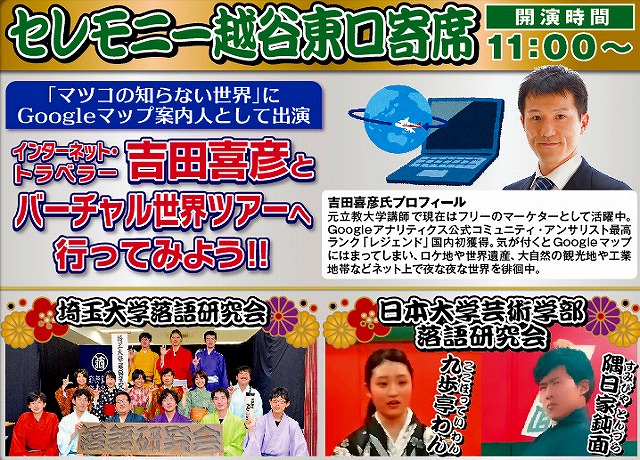 今度は「セレモニー越谷東口寄席」と題して、吉田喜彦さんの「バーチャル世界ツアーへ行ってみよう!!」