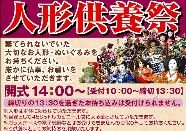 2017年12月10日(日) セレモニー越谷東口ホール セレモニーフェアで「人形供養祭」を開催いたします。