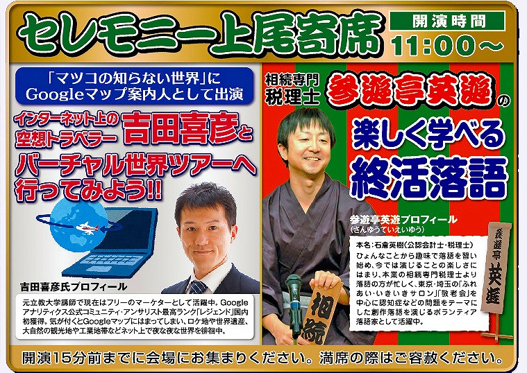 また、江戸時代から続く伝統的な話芸といえば、落語。その落語を相続専門税理士である、参遊亭英雄さんが 「楽しく学べる終活落語」として、みなさまにお届けします。