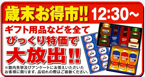 3点まとめて50円で販売してます。そして「歳末お得市」ではびっくりする価格でギフトなどの
