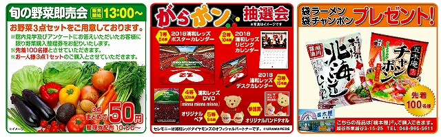 13:00にはセレモニーフェアの定番!!旬の野菜即売会を3点50円で販売いたします。