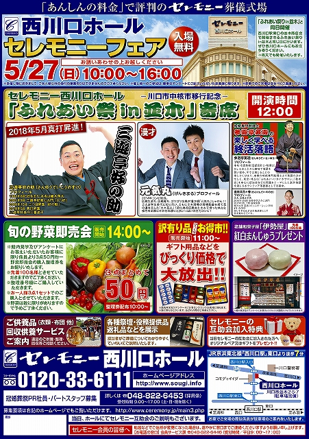 葬儀式場セレモニー西川口ホールでは5月27日にセレモニーフェアを開催いたします。