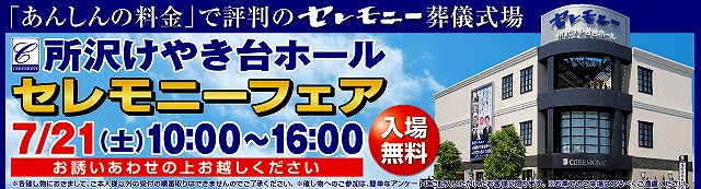 7月21日(土) 開催します!!セレモニー所沢けやき台ホール セレモニーフェア