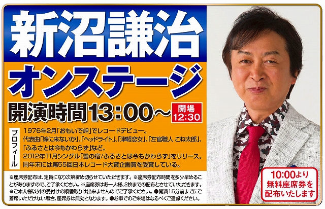 15周年にふさわしいゲストとして、歌謡界の大御所 新沼謙治さんをお招きしてオンステージを開催!!