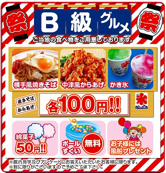 また「夏祭り」らしい企画としてB級グルメも催します。