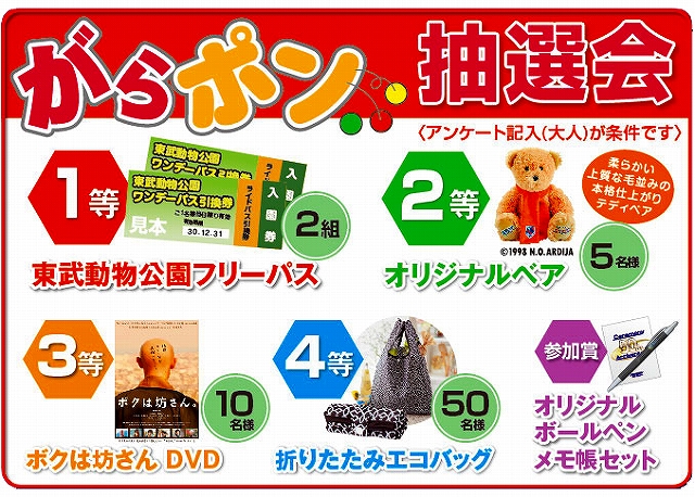 また、遊園地のチケットが当たるガラポンもございますので、平成最後の夏をどうぞ大宮ホールでお楽しみください。