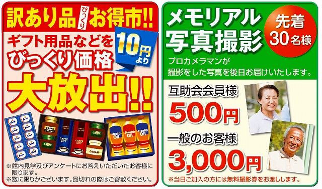その他にもメモリアル写真撮影、びっくりお得市もご案内しております。