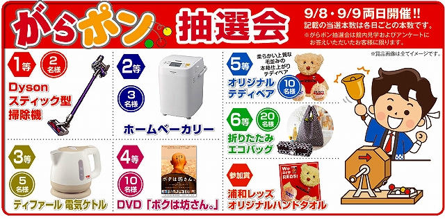 両日開催してる催し物は、ダイソンの掃除機などが当たる「がらポン抽選会」、