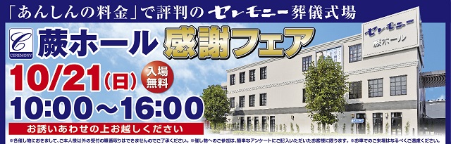 2018年10月21日(日) セレモニー蕨ホールにて皆さまへの日頃の感謝を込めて蕨ホール感謝フェア(10:00~16:00 入場無料)を開催いたします。