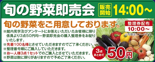 セレモニーの人気イベント野菜即売会は14時から販売開始!