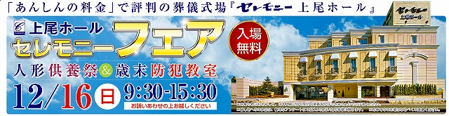 12月16日(日)セレモニー上尾ホール 人形供養祭と防犯セミナー開催