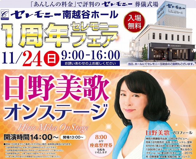 第34回NHK「紅白歌合戦」に出場したこともある、歌手の日野美歌さんがセレモニー南越谷ホールに
