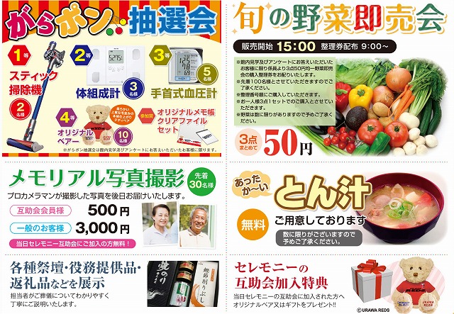 また、豪華景品が当たるガラポンの他、豚汁の無料配布やメモリアル写真撮影など、内容盛りだくさん!