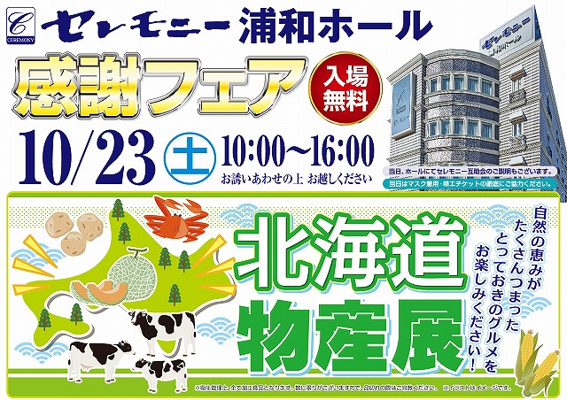 2021年10月23日(土)葬儀式場セレモニー浦和ホールにて感謝フェアを開催いたします。