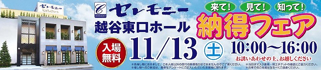 11月13日(土)セレモニー越谷東口ホール 納得フェア 開催のお知らせ