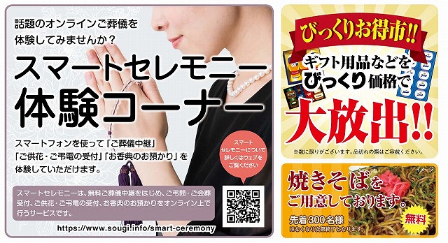 また、葬儀に関する疑問を一級葬祭ディレクターがお応えする「ご葬儀相談」や相続のプロの相談コーナー、