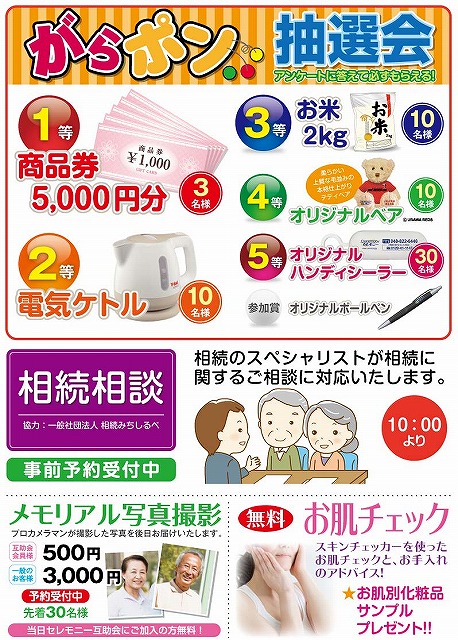「びっくりお得市」や旬な野菜が3点で50円「野菜即売会」、ガラポン抽選会等々催し物が盛りだくさん!!