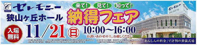 2021年11月21日(土)葬儀式場セレモニー狭山ヶ丘ホールにて納得フェアを開催いたします。