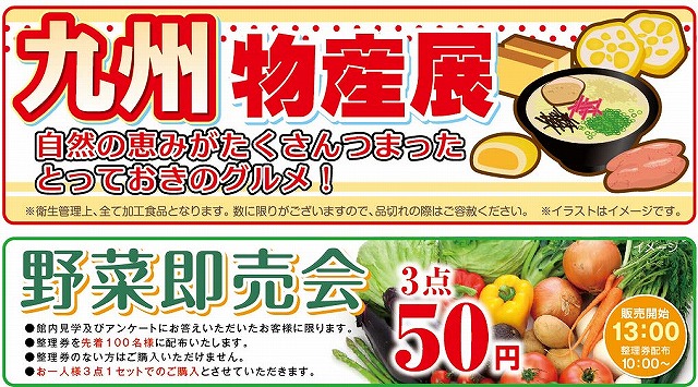当日はとっておきグルメをお届けする「九州物産展」、セレモニーの人気企画でお得な商品をお安く提供する