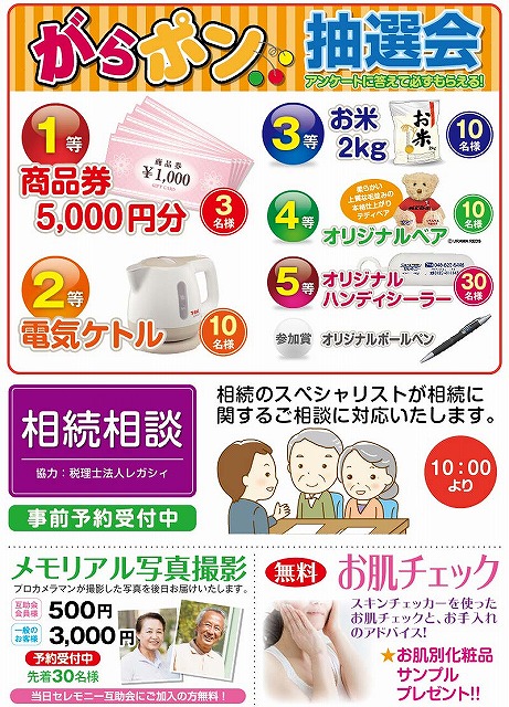 また、葬儀に関する疑問を一級葬祭ディレクターがお応えする「ご葬儀相談」や相続のプロの相談コーナー、