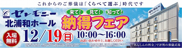 12月19日(日)セレモニー北浦和ホール「納得フェア」 開催のお知らせ