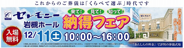 2021年12月11日(土)葬儀式場セレモニー岩槻ホールにて見て!来て!知って!納得フェアを開催いたします。